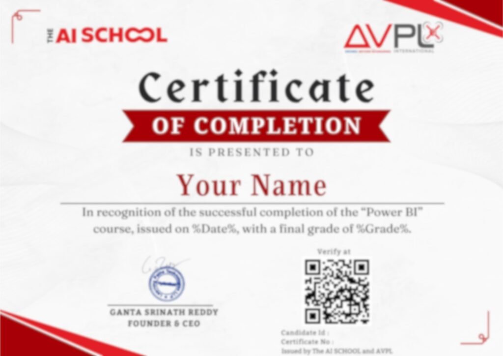 The AI SCHOOL and AVPL invite you to join ONE MONTH Online Certificate program on Power BI